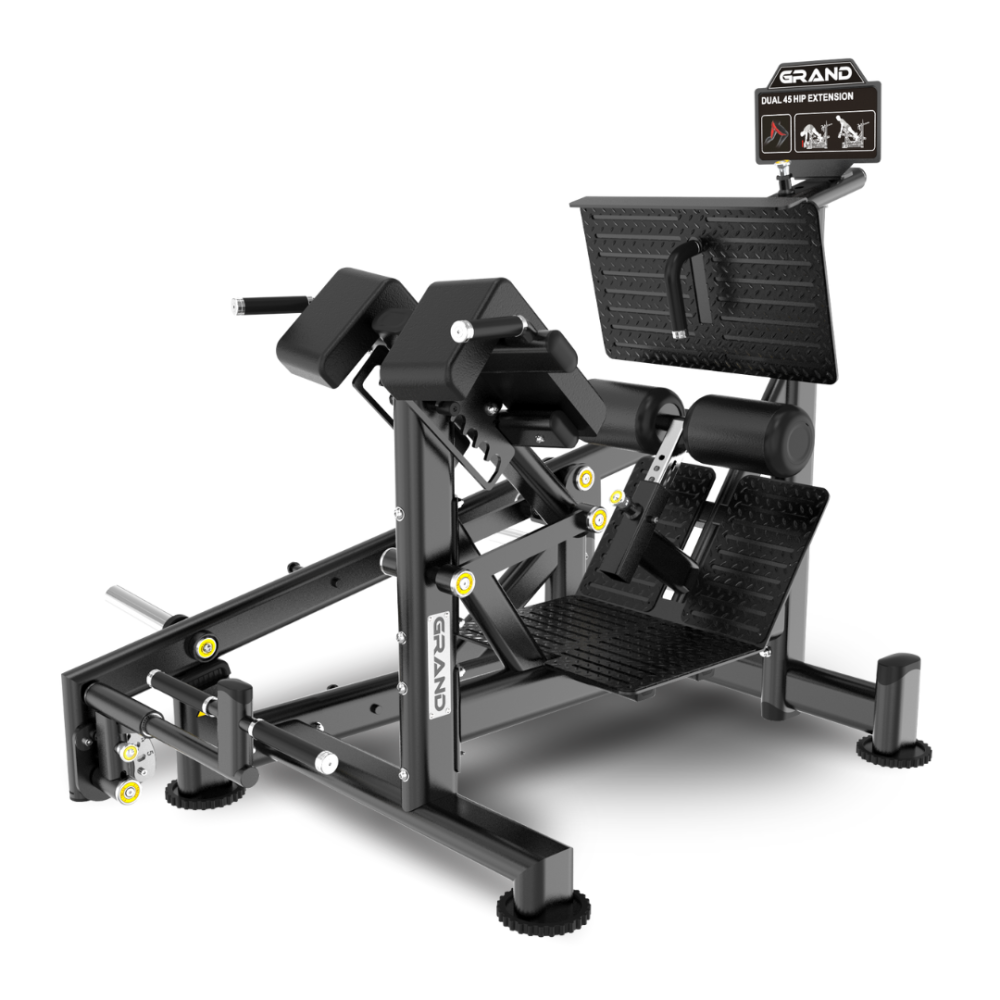 GRAND Hip Extension je profesionální posilovací stroj určený pro nejnáročnější uživatele posiloven a fitness klubů. Tento stroj na protahování kyčlí umožňuje plné zapojení hýžďových svalů, hamstringů a vzpřimovačů páteře – svalových skupin nezbytných pro zlepšení tvaru těla, stabilizaci páteře a celkové výkonnosti.